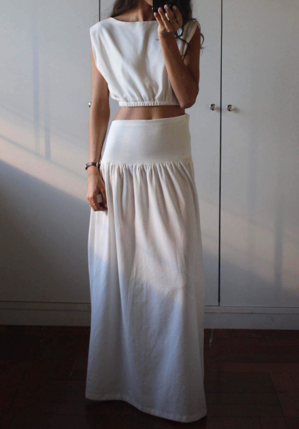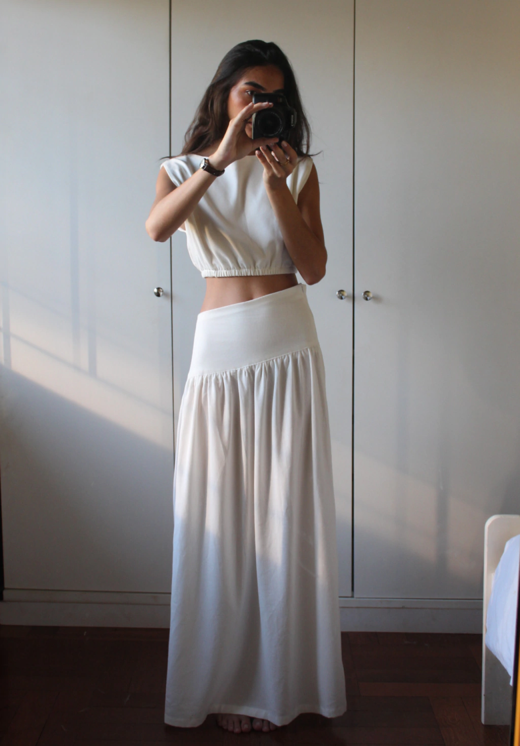 Detalhes: É inteira de Linho com Viscose, toda dupla (não é transparente) com costura embutida, possui elástico na barra e uma abertura com botão na parte de trás da gola para melhor vestibilidade da peça. É uma peça de tecido fresco e acabamento impecável, perfeita para começar um novo ano com felicidade e beleza!