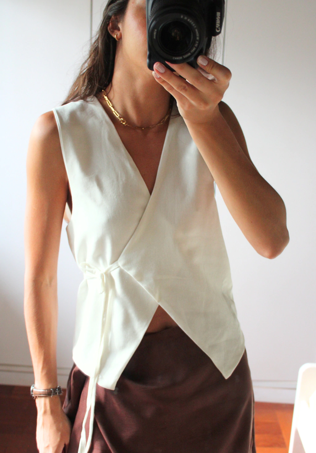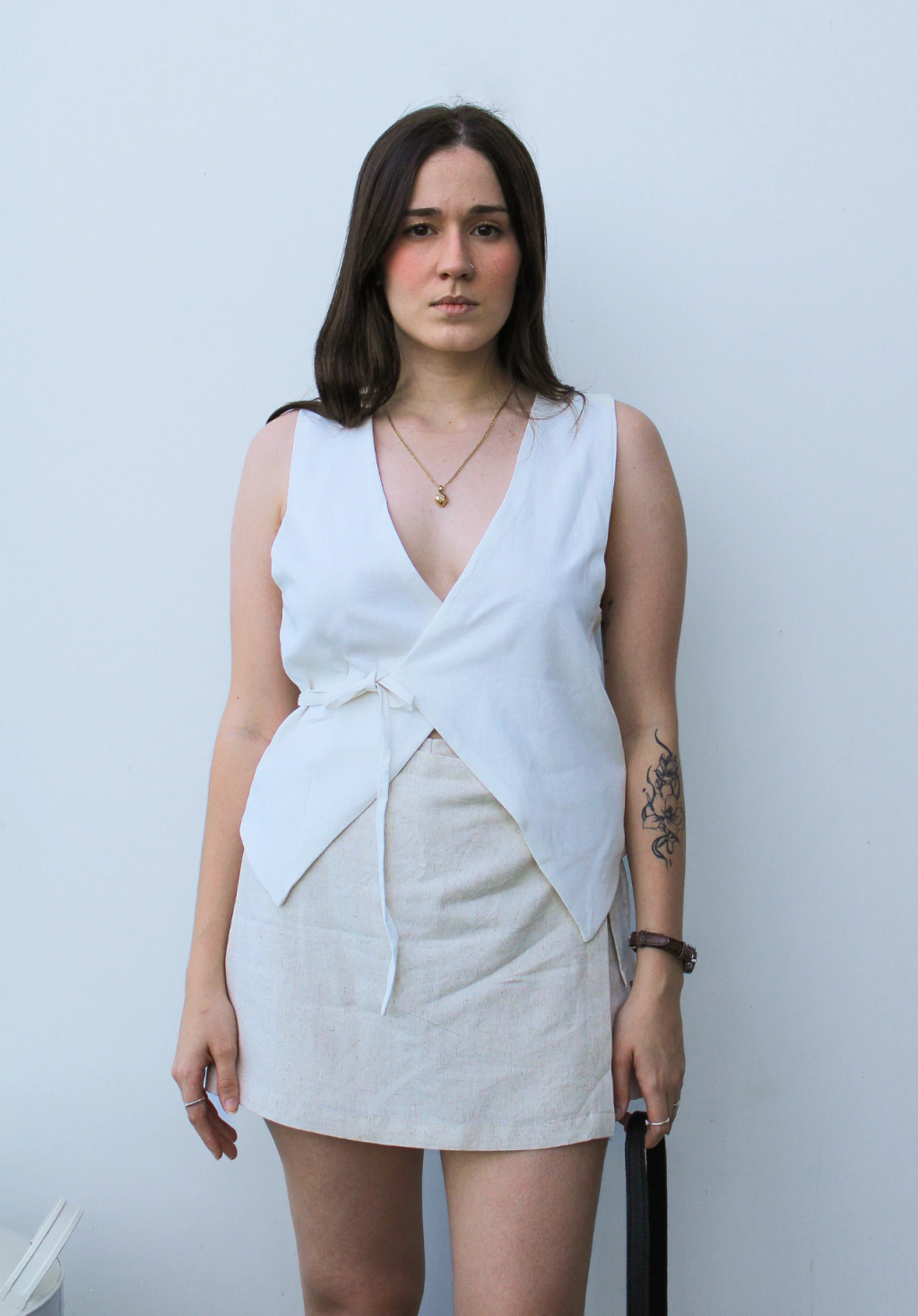 A Blusa Vacanza é uma blusa transpassada, feita no linho e toda forrada em viscose. A costura dela é embutida, com um acabamento limpo, elevando ainda mais a qualidade da peça. É versátil, perfeita pra ocasiões diversas, desde ir trabalhar, com uma calça jeans até a sair a noite com uma mini saia. Ela se adapta ao seu look!