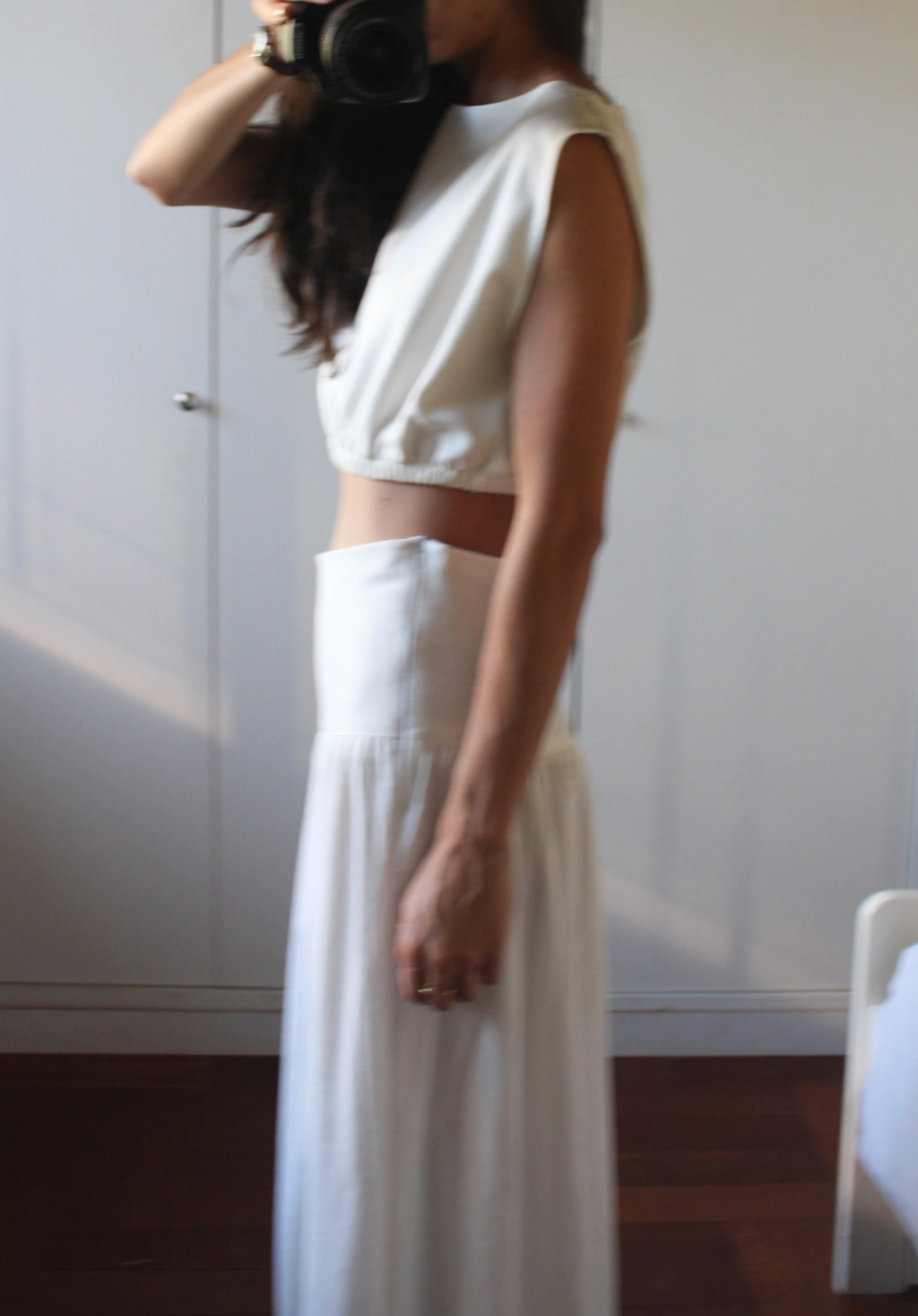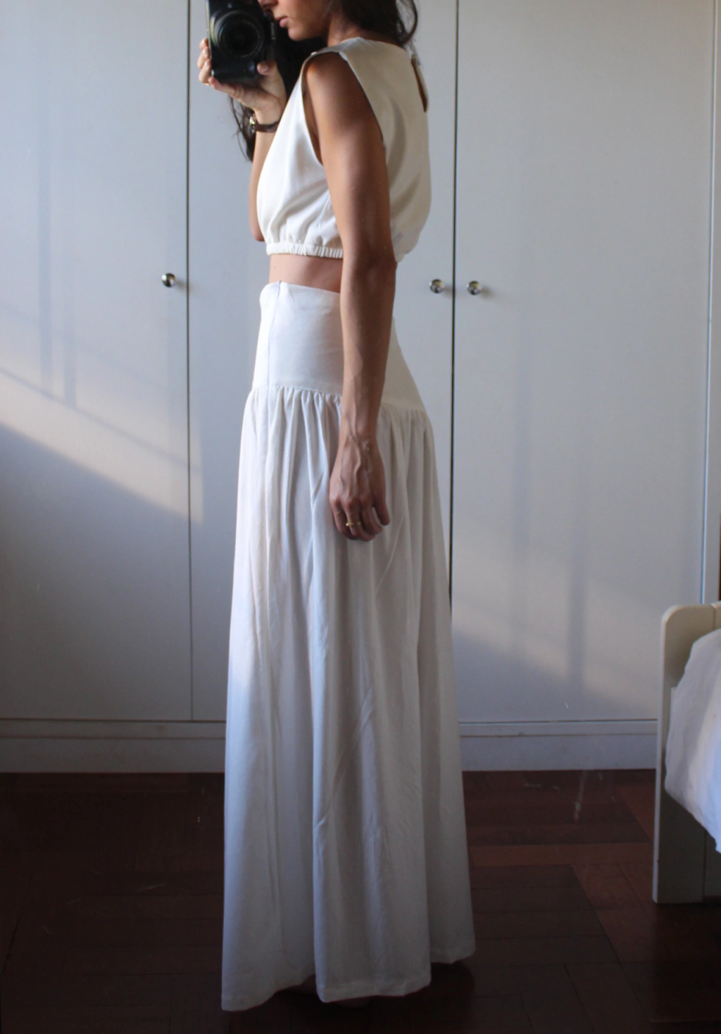 É uma saia inteira de Linho com Viscose, com o cós duplo (por isso não é transparente) e assimétrico e fechamento com zíper invisível de 30cm na lateral esquerda (a parte mais alta do cós). É uma peça de tecido fresco e acabamento impecável, perfeita para começar um novo ano com felicidade e beleza!